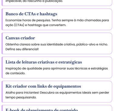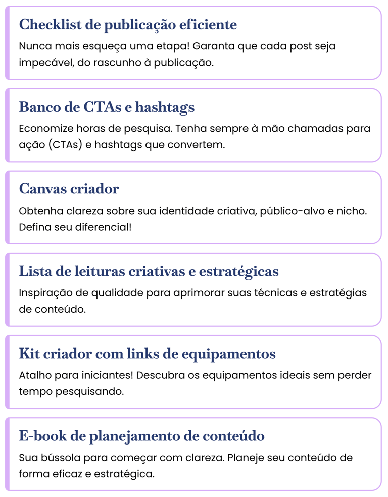 Os guias de Editorial, Tom de Voz, Missão, Visão, Valores e Branding vão fazer você produzir conteúdo com consistência, autenticidade e profissionalismo.